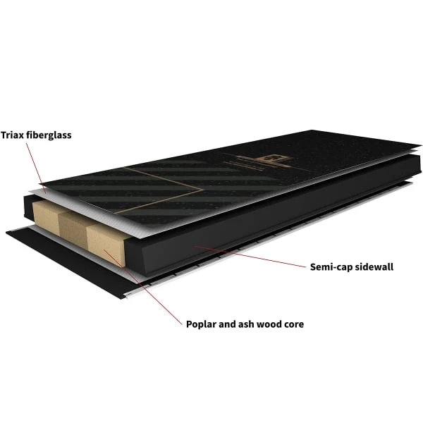 Solidly built around a wood core combining poplar and ash, covered with the Triax fiberglass process, this ski perfectly absorbs shocks and vibrations. The top sheet that covers it is reinforced and designed to last.