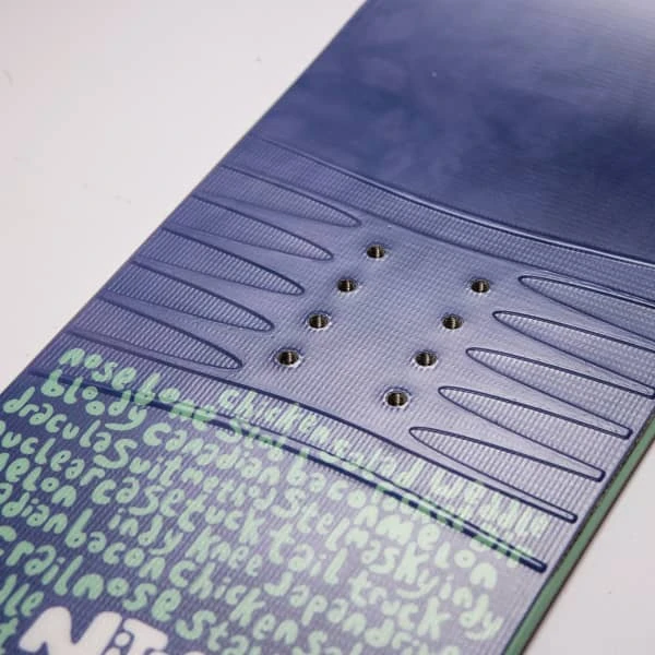 - Camber : Flat-out rocker : it is a hybrid model with a flat camber under the feet and front and rear rockers that start before the traditional contact points. It offers effortless and smooth turns. These rockers allow for better floatation, pressability and forgiveness for a playful and stable ride.